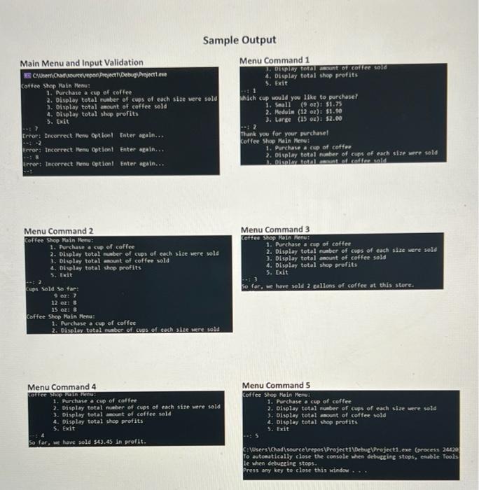 Solved Sample Output Menu Command 1 1 Display Total Art Of Chegg Com
