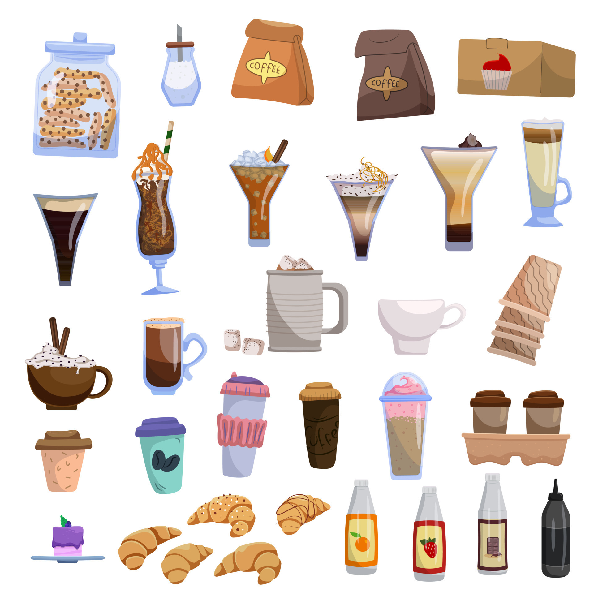 Different Types Of Coffee Coffee Menu An Invigorating Drink Croissants And Pastries Coffee Tonic Coffee To Go Takeaway Set Of Vector Illustrations 7621611 Vector Art At Vecteezy